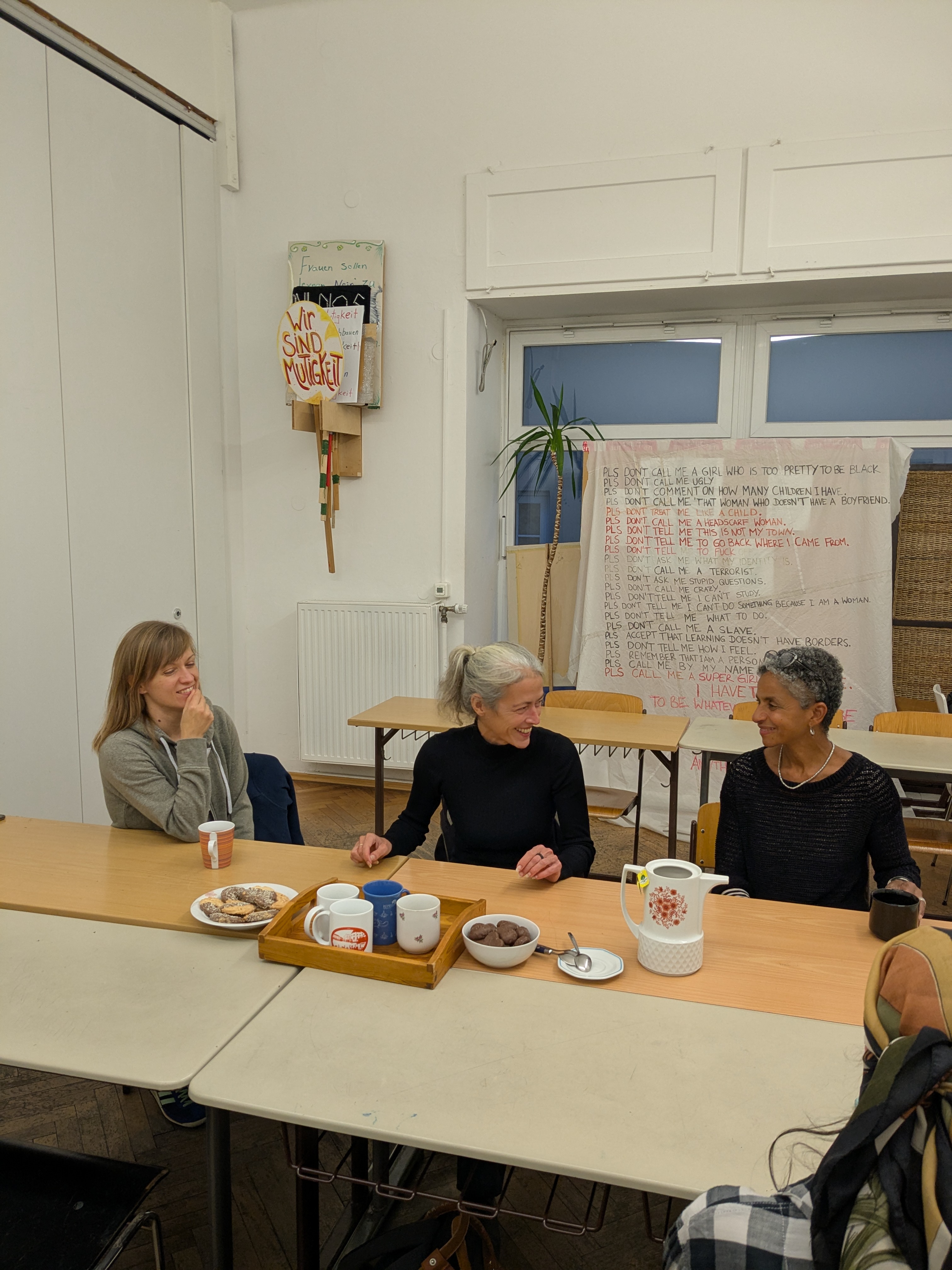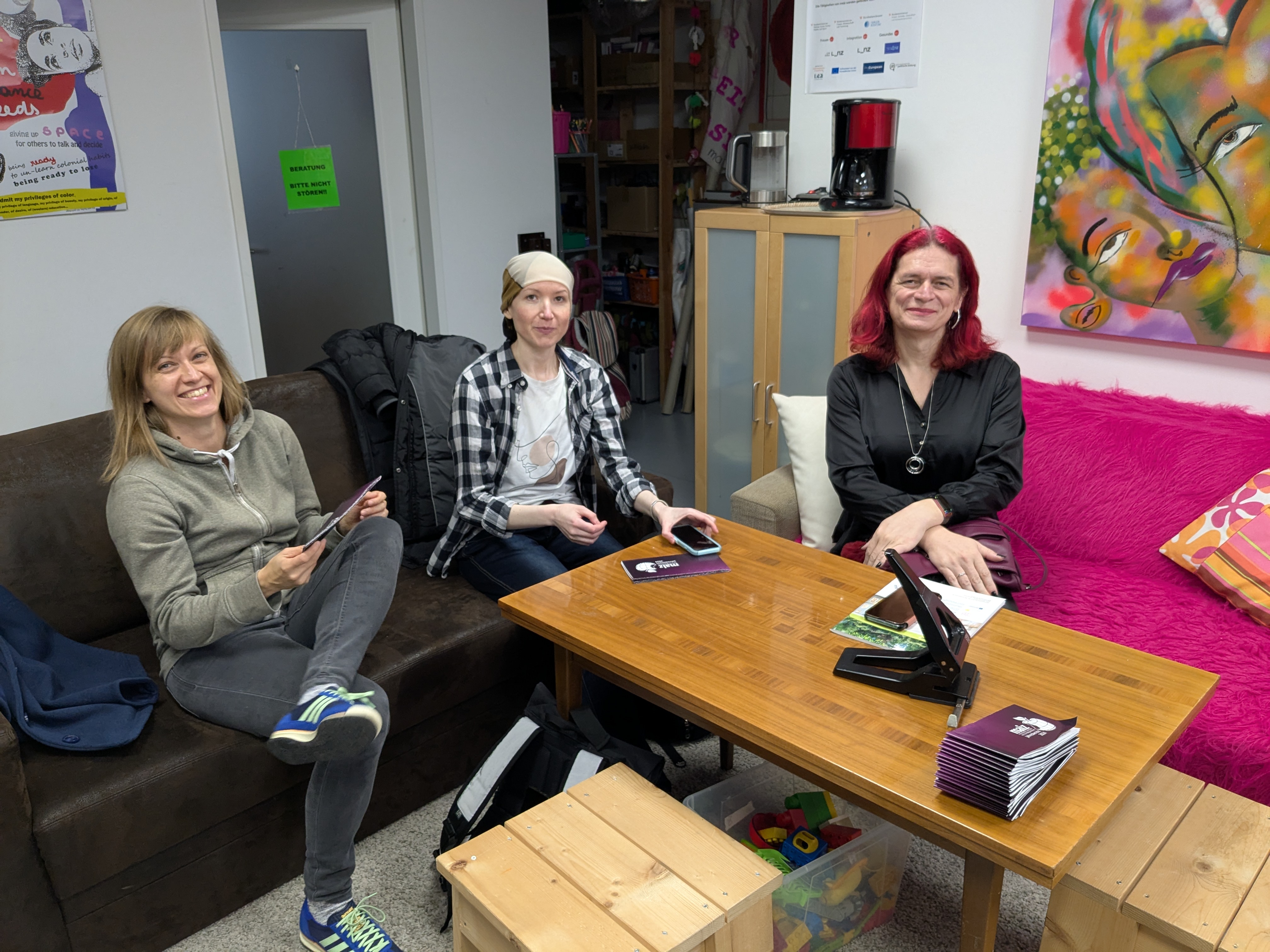 Das Projekt Politik? Ja, danke! (gefördert von der Stadt Linz im Rahmen von Stadt der Vielfalt 2024) will Menschen aller Herkunft den sogenannten Dritten Sektor (gemeinnützige Vereine und Organisationen) der Stadt Linz näherbringen. Ziel des Projekts ist es, ein Verständnis für die sozialpolitischen Aufgaben, Herausforderungen und Potenziale gemeinnütziger Organisationen zu vermitteln. Ein besonderer Fokus liegt auf der kritischen Auseinandersetzung mit Konzepten wie Demokratie, Repräsentation, Politik und Identität zu. Frauen*stimmen in Dissonanz interveniert in dieses Projekt und bringt dadurch eine besondere feministische Perspektive ein, wo wichtige Linzer Frauen*und Migrant*innenorganisationen vorgestellt bzw. besucht werden.