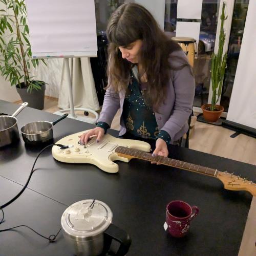 In diesem Workshop werden wir den Kochtopf als Klangelement neu besetzen. Er wird das Hauptelement einer gemeinsamen Klanginstallation sein. Als metallener Gegenstand, dessen Klang wir aus dem Alltag kennen, wird er umfunktioniert zu einem Sound-Verstär-ker. Während des Workshops werden wir gemeinsam die stereotype Konnotation des Top-fes mit weiblicher Carework sprengen und ihn mit neuen akustischen Inhalten füllen. In den Töpfen entsteht ein Chor aus Geräuschen – eine kollektive Installation aus den Klängen des Alltags, von Instrumenten und Stimmen. In einem gemeinsamen kreativen Prozess setzen wir uns über die Regeln der Musikproduktion hinweg und finden individu-elle und verbindende Ausdrucksformen, die wir in eine Klanginstallation zusammenfügen. Es sind keine musikalischen Vorkenntnisse erforderlich. Der Workshop soll zum musikali-schen Experiment und Austausch einladen, ohne Leistungsdruck.